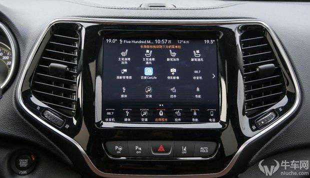 8.4英寸的中控显示屏幕采用第四代Uconnect人机交互系统,兼容了CarPlay以及百度的CarLife手机映射功能,在这款屏幕中,集成了座椅加热、座椅通风等功能,加热功能设置了二阶可调。全新Jeep自由光的中控按键比较规整,相比老款并没有太大变化,物理按键手感比较扎实。但是,座椅通风以及加热功能并没有设置实体的物理按键,个人感觉这一点并不是很方便,每次都要在繁杂的中控屏幕中调节,使得这一操作变得麻烦起来。