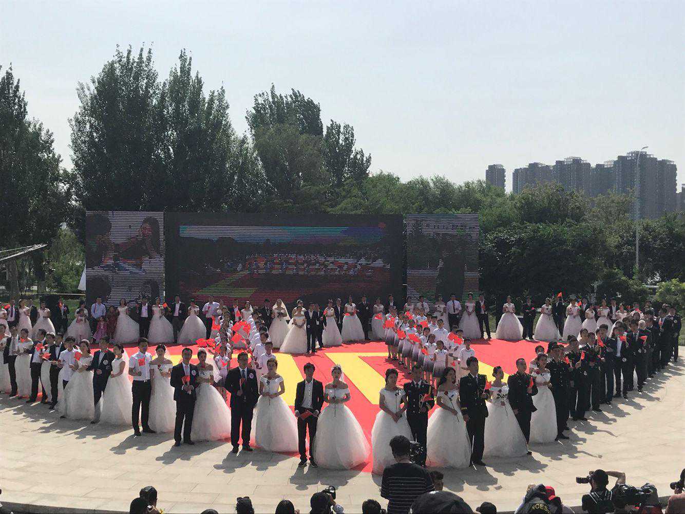 今年是2019年,是新中国成立70周年。70年的时间,我们的祖国从破茧成蝶到轻飞曼舞,早已焕然一新。我们的驻地沈阳,在城市综合实力、城镇化进程、城市环境治理和文明城市创建等方面取得显著成就,如今的沈阳可以说是美的高端、美的多样、美的别具一格。今天,我们70对新人在这里举行一场永生难忘的婚礼。2019,爱在一起,天长地久。”