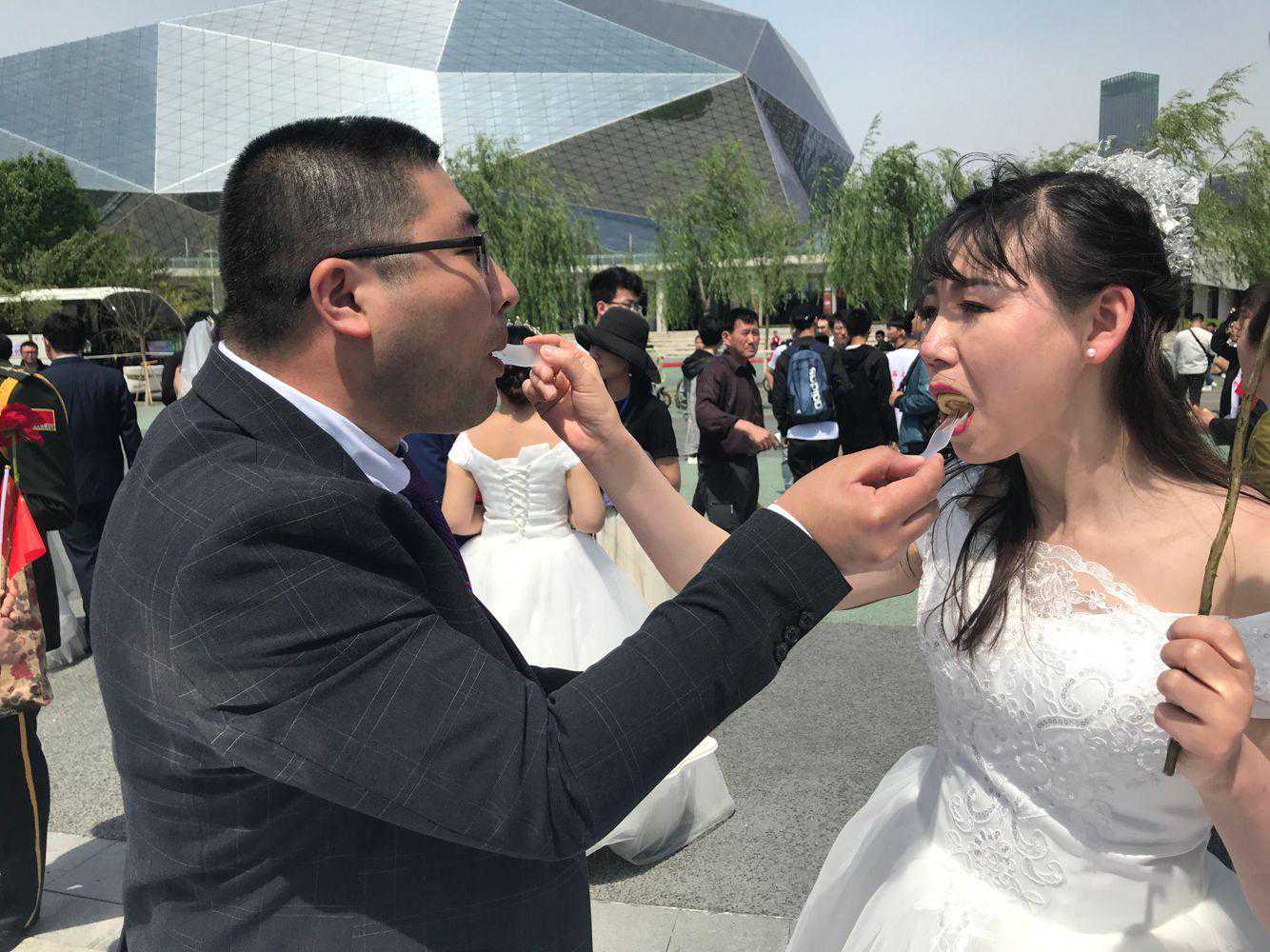 沈阳网、沈报融媒讯(记者贺昊岚文并摄)2019年5月18日9时18分,第二届沈阳“钻石之恋”集体婚礼,在盛京大剧院“大钻石”太阳广场隆重举行,世界最大“钻石”见证了70对新人们坚贞不渝的爱情。