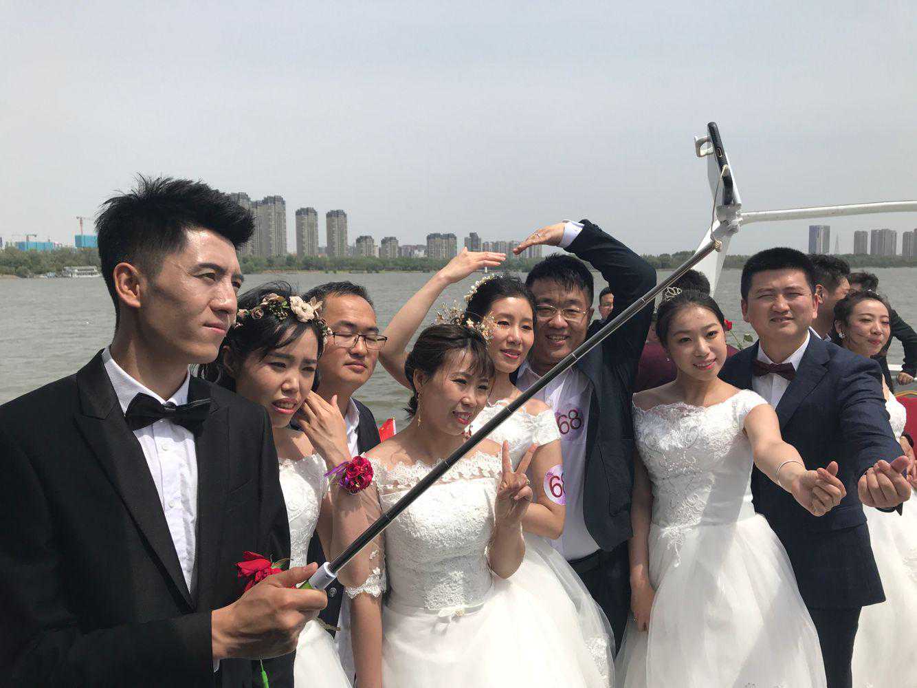 婚礼仪式结束后,新人们乘坐游船至浑河南岸最佳拍照地点,为他们的爱情留下最重要的一刻。
