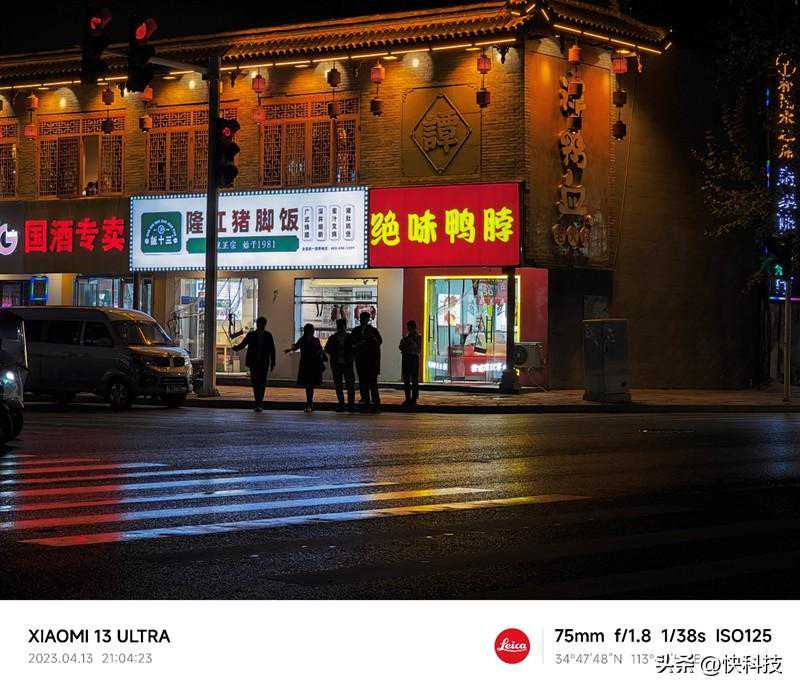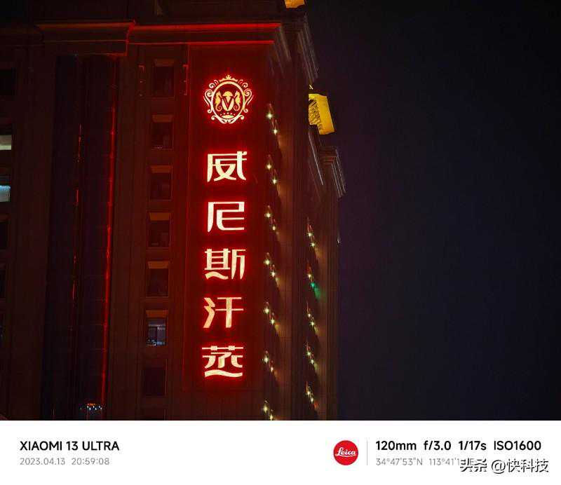 在夜景下,5倍的潜望式长焦摄像头拍摄的样张观感通透明亮,色彩还原接近真实场景。