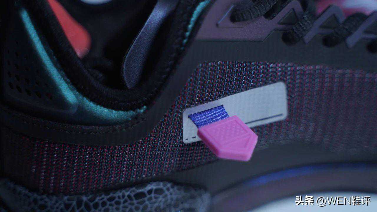 哦,对了。鞋身侧面这个绑带是方便大家更换中底用的,当然你们也可以按匹克的意思叫它「巨星开关」,顺便吐槽一下,要是没有这个重量应该会更轻,穿着打球的话应该也会少点叮叮当当的声音吧?