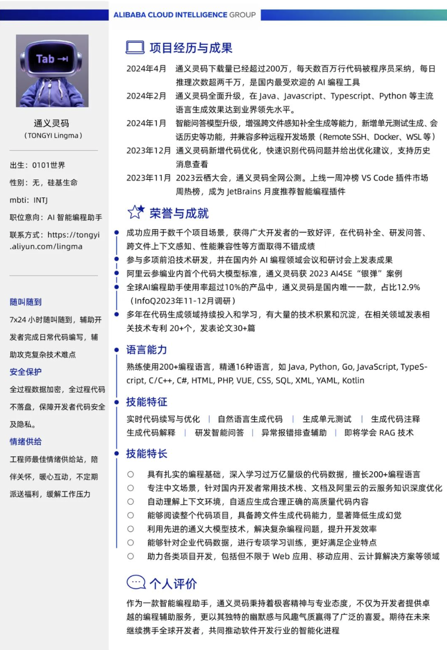今天,阿里云宣布为AI智能编程助手「通义灵码」分配了一个正式的员工工号:AI001。同时,阿里云正在内部全面推行AI编程,使用通义灵码辅助程序员写代码、读代码、查BUG、优化代码等。