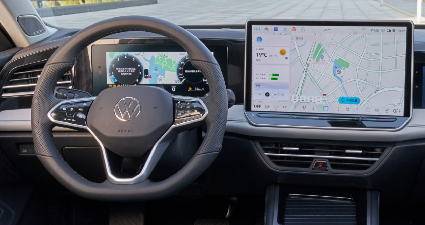 内饰方面,R-line版车型看起来会更加的有运动感和前卫气息,其中,10.25英寸数字液晶仪表盘和15英寸悬浮式中控大屏(升级为OLED屏)的组合搭配营造出了不错的科技感,而新加入的副驾娱乐屏则是属于妥妥的“本土化”特色改良,预计也会收获到不少人的喜欢。