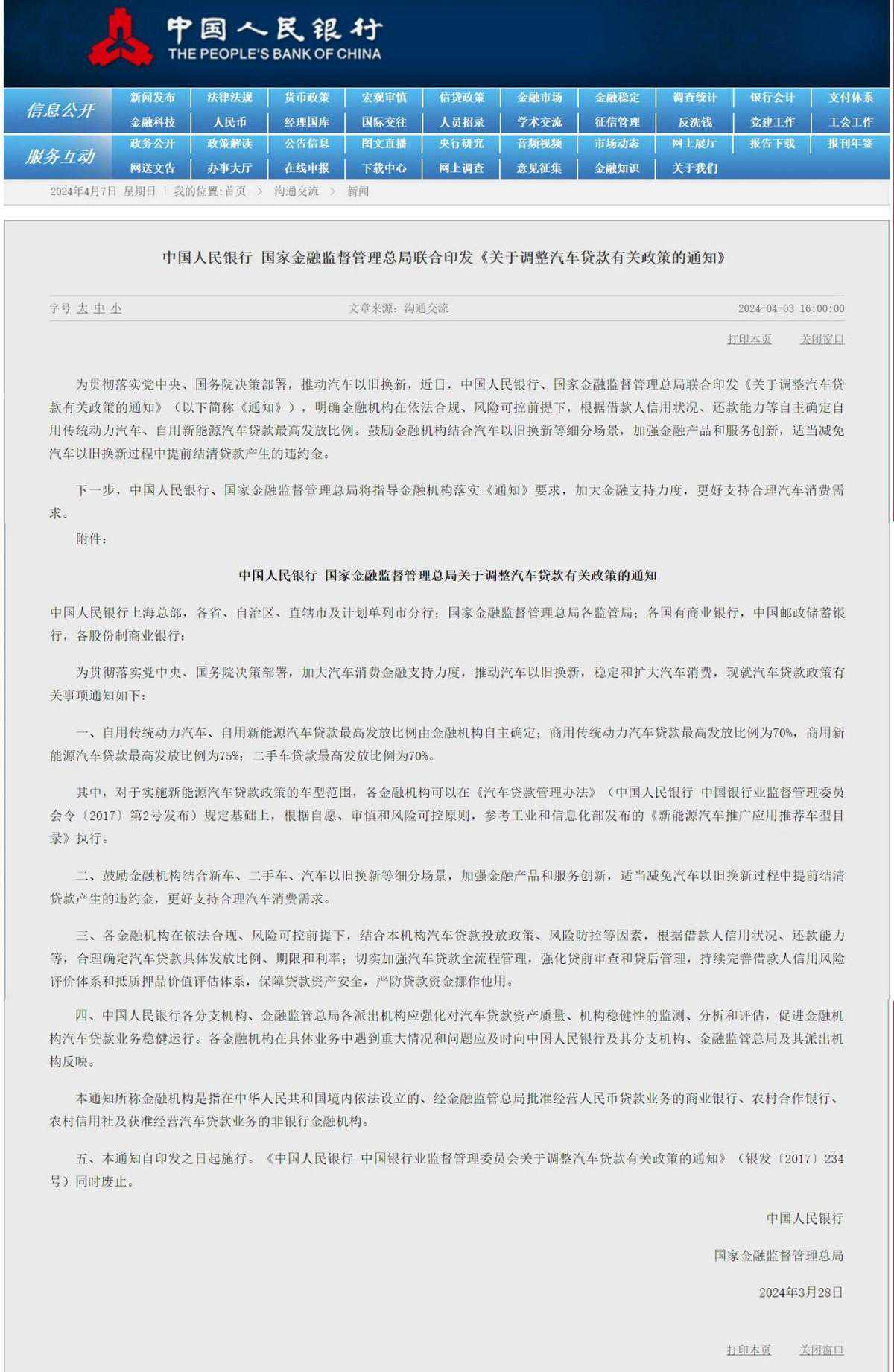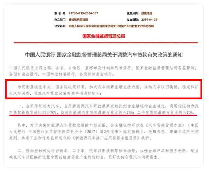 近日,据央视新闻报道,中国人民银行、国家金融监督管理总局联合印发通知,宣布将调整汽车贷款发放比例,最高可达100%。