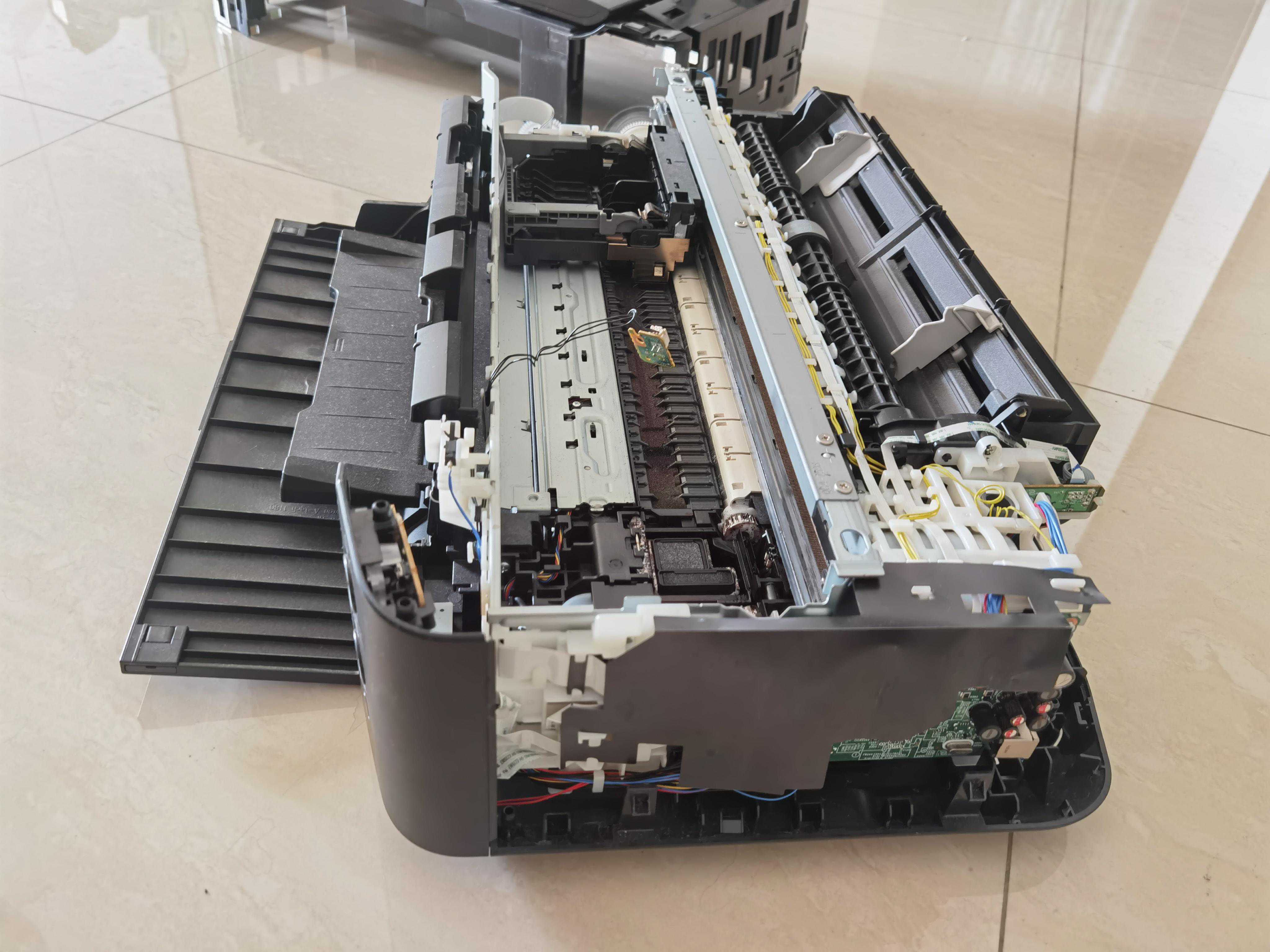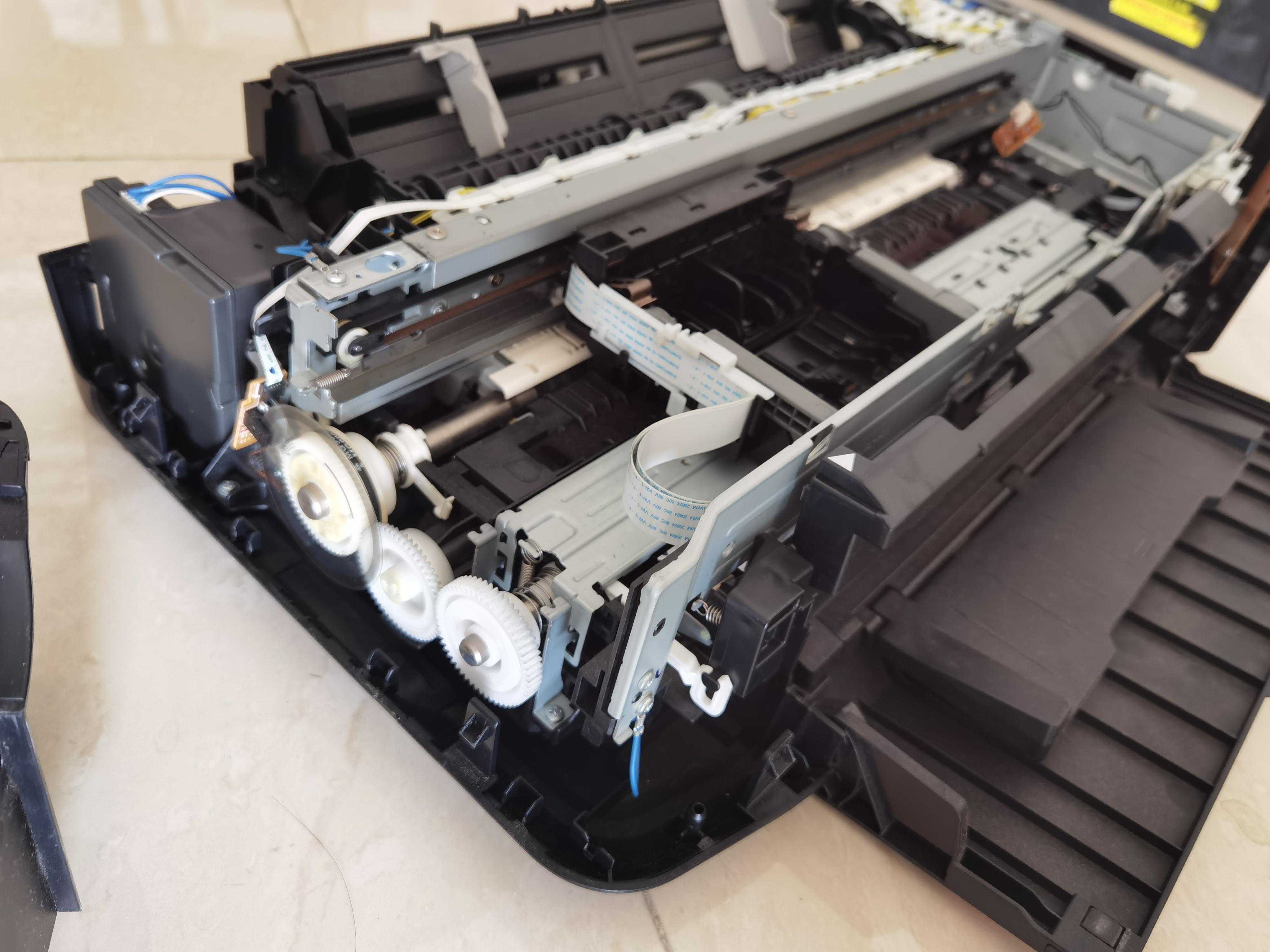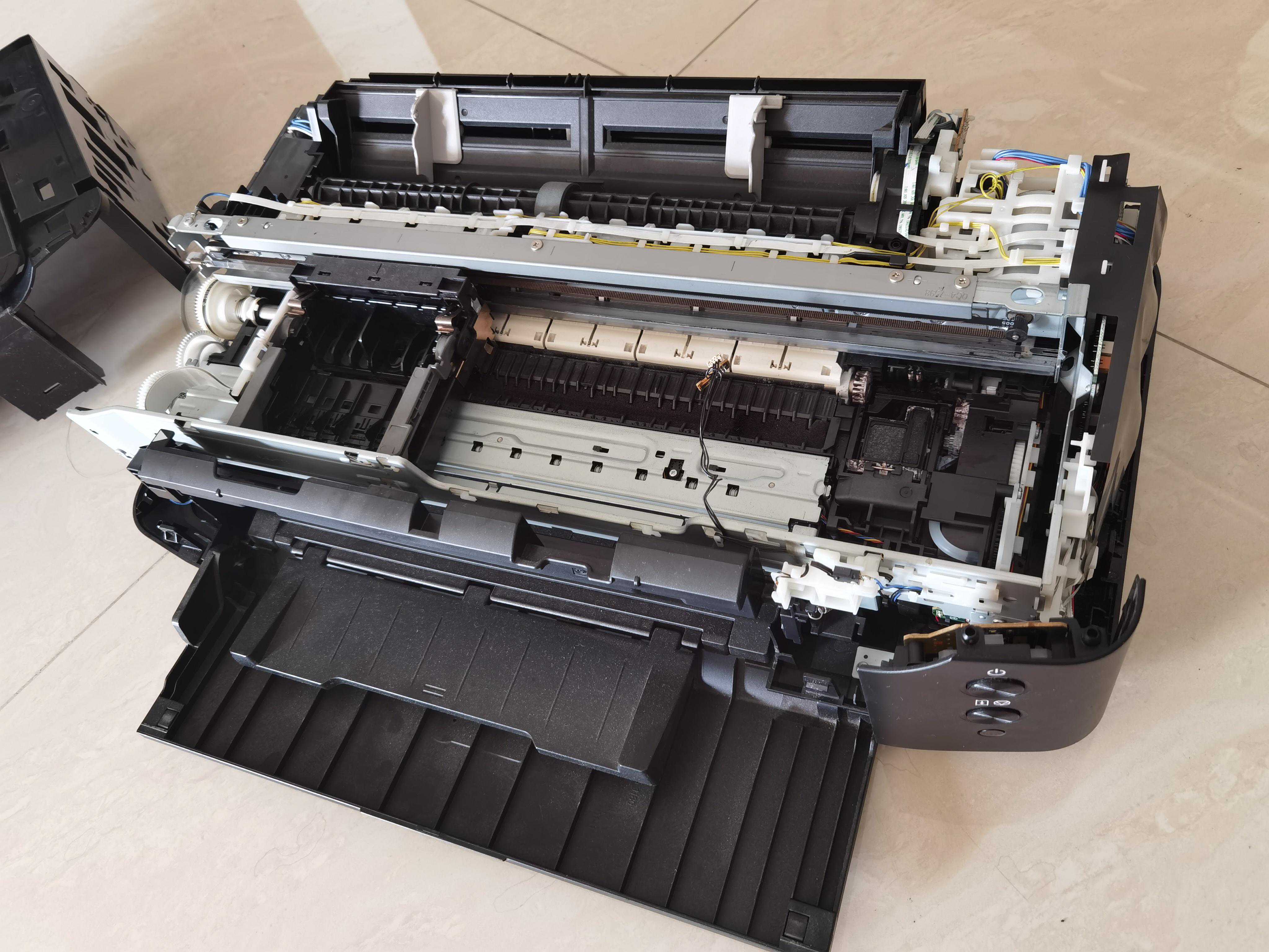 围着机器绕了几圈,连颗螺丝都没找到,在网上搜了下类似机型的拆机的拆机教程,照葫芦画瓢,确定我这台打印机也是要先拆左右两边的外壳,仔细寻找了卡扣位置后,开始动手