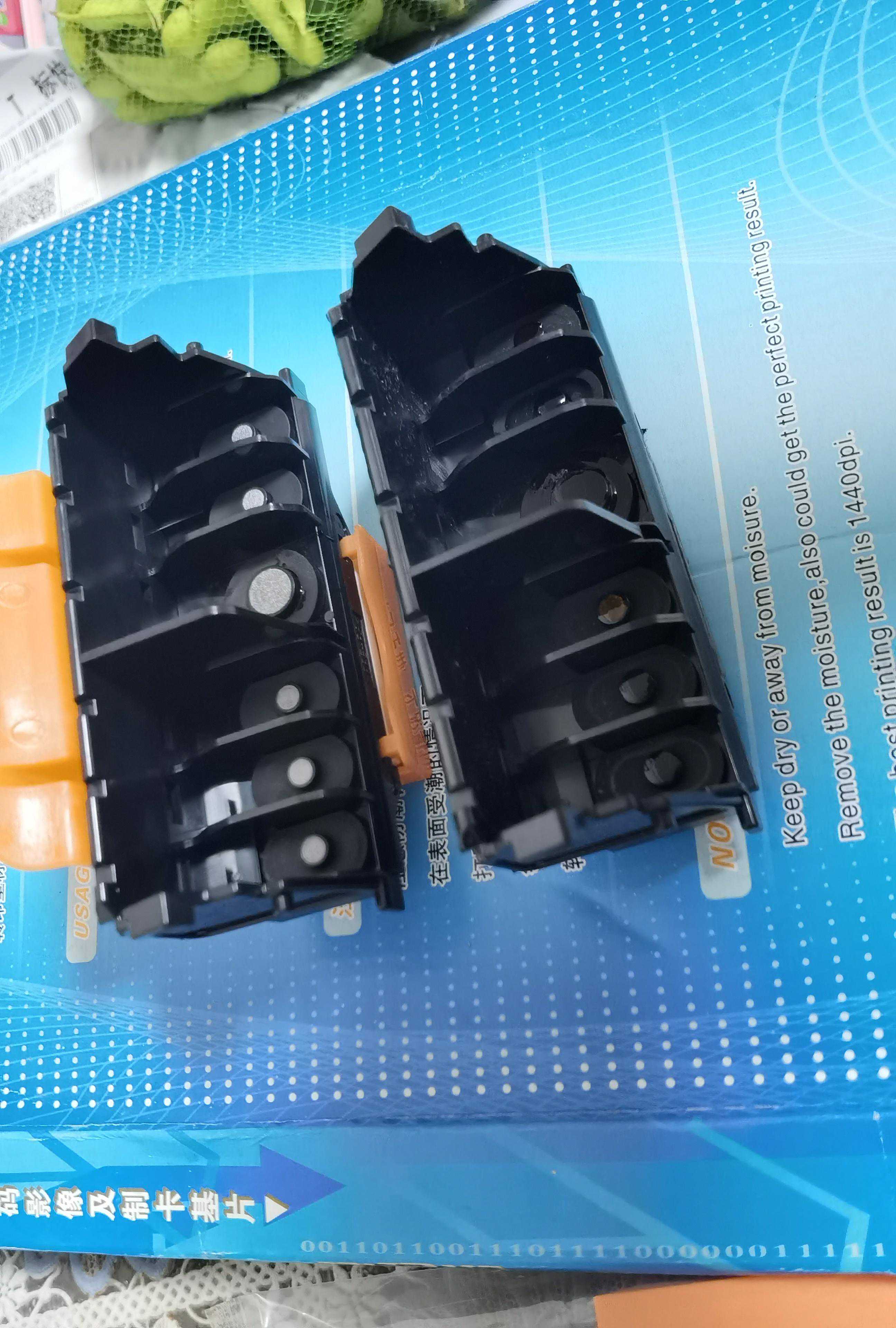 几块钱一个的墨盒,连标签纸都不一样。这个大黑刚拆封墨水就流出来流到手上了,质量确实不咋地。