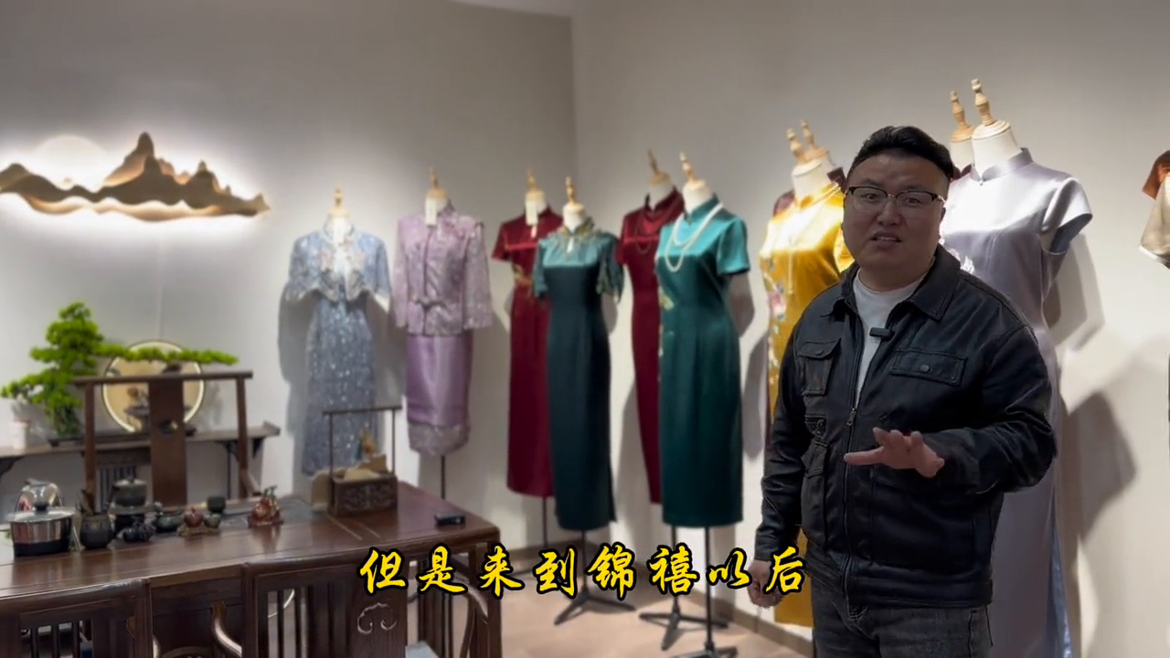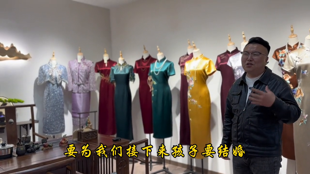 所以在今天专门的也为妈妈准备了属于她们的专门的礼服馆。如果不来到锦禧,我真的对这个确实不太了解。就像这位店主所讲,一个96年的姑娘,现在已经是两个孩子的母亲,她告诉我,这个店里的所有的属于妈妈的这份礼服,有苏绣、湘绣还有云绣是吗?香云纱,所有各式各样的,包括各种款式的码也都是完全的要为接下来孩子要结婚,在家里边的妈妈要准备的这份,其实属于给妈妈准备的这份惊喜。