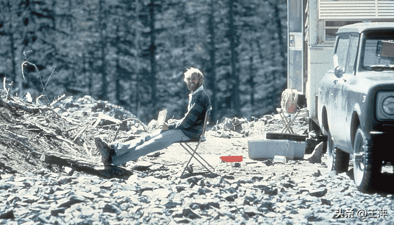1980年5月17日,美国火山学家大卫·亚历山大·约翰斯顿,和同事哈利·格里肯,在距离圣海伦火山10公里的一处观测点,搭起了一个营地。照片中的大卫·亚历山大·约翰斯顿,正在对着镜头微笑,13个小时后,圣海伦火山喷发,二人都在这场火山喷发中不幸丧生。