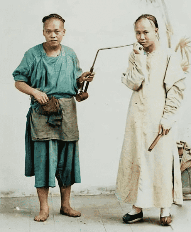 在照相馆摆拍的两人,当时拍照可不是一般人能拍的