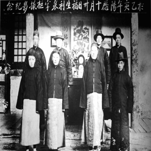 清末时期一个王爷的婚礼照片,从他服装上的团龙补子可以推断出,他应该位在郡王或者以上