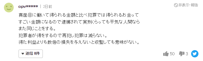“偶尔才打击一下这种小地方,马上又会在其他地方做同样的事情。如果不在全日本范围内强力打击,什么也不会改变,而且惩罚太小了,结果就是再犯”