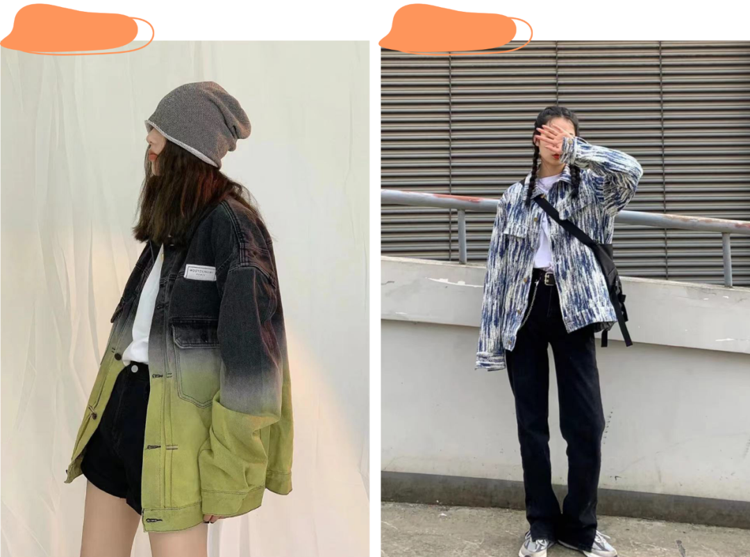 牛仔外套的风格可以百变多样,比如下面这种渐变的款式很特别,超级吸睛,水洗的雪花蓝牛仔外套穿上一秒变酷。