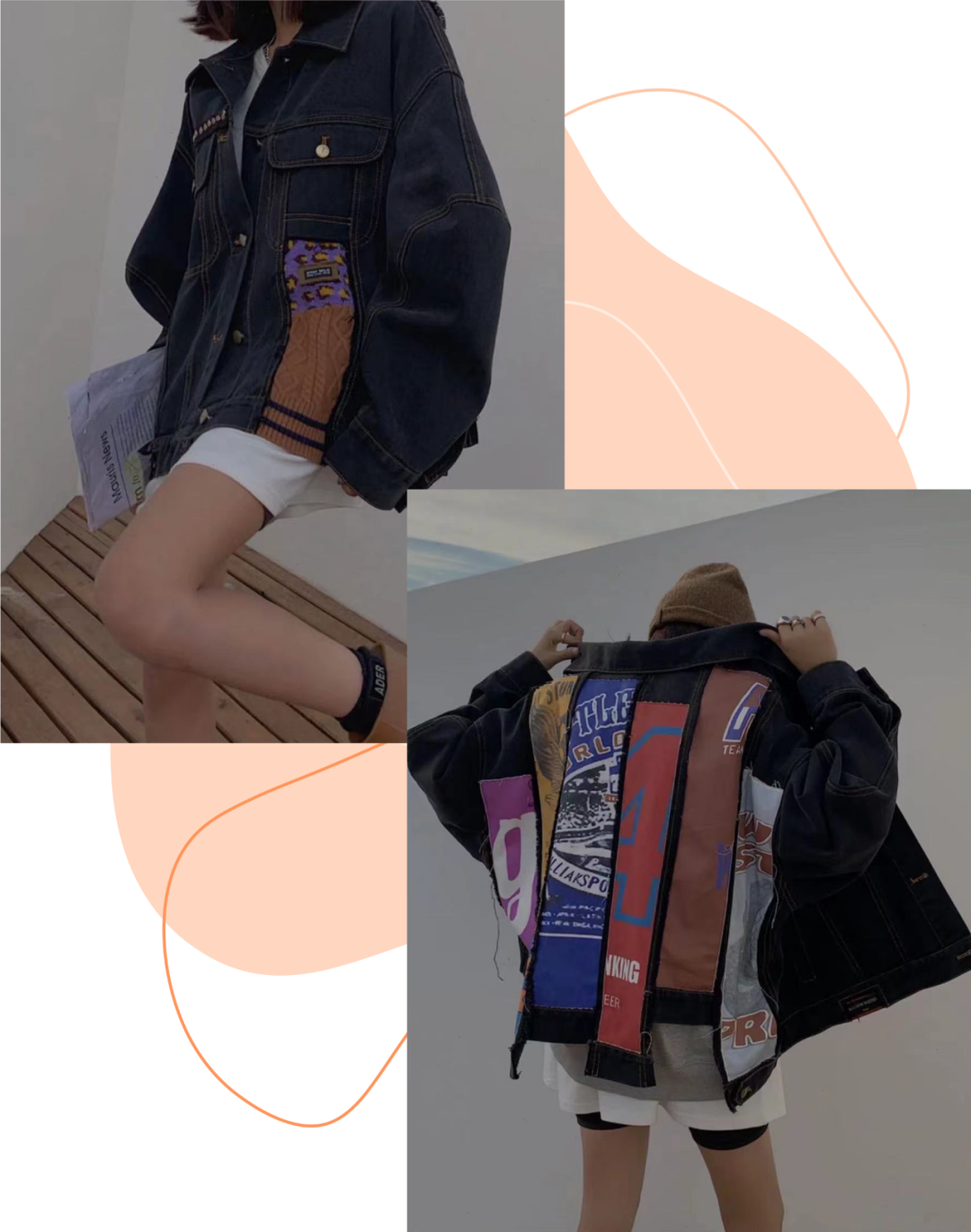 这种拼接元素比较多的设计单拎出来就很出彩了,随性又可爱,但是内搭和下装就不要过于花里胡哨了,小心过犹不及~