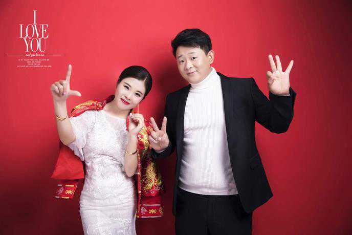 下图是中西结合。换了一套修身的鱼尾裙。搭配秀禾服的外套,还摆了LOVE的手势,本人特别喜欢,你们可以尝试一下