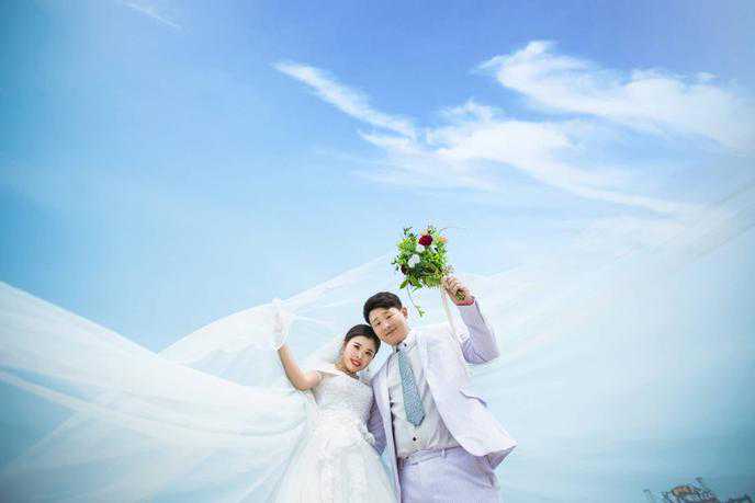 下图是海边的白纱,因为路不好走,不让选择修身。只能选择宽松的白纱。拍出来也特别的小清新。不过我不是太满意,我觉得白纱一定要配大海但是没有拍出我想要的那种感觉建议可以选择红色礼服在海边拍特别有意境!