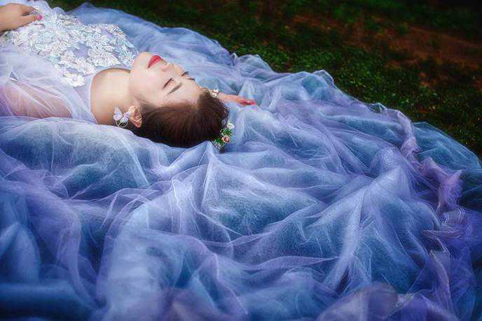 下图是森系风格。是彩莎。就在一个公园拍的,我不怎么满意,因为当时想拍夜景。被化妆师套路了。这是躺在公园的草地拍的,修出来的效果。这一张特别美