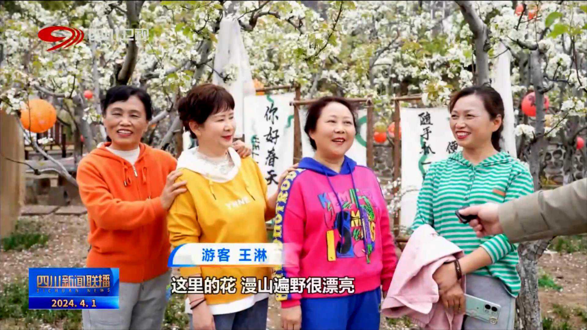 游客王淋:来这里我们心情很愉快,这里的花,漫山遍野很漂亮。