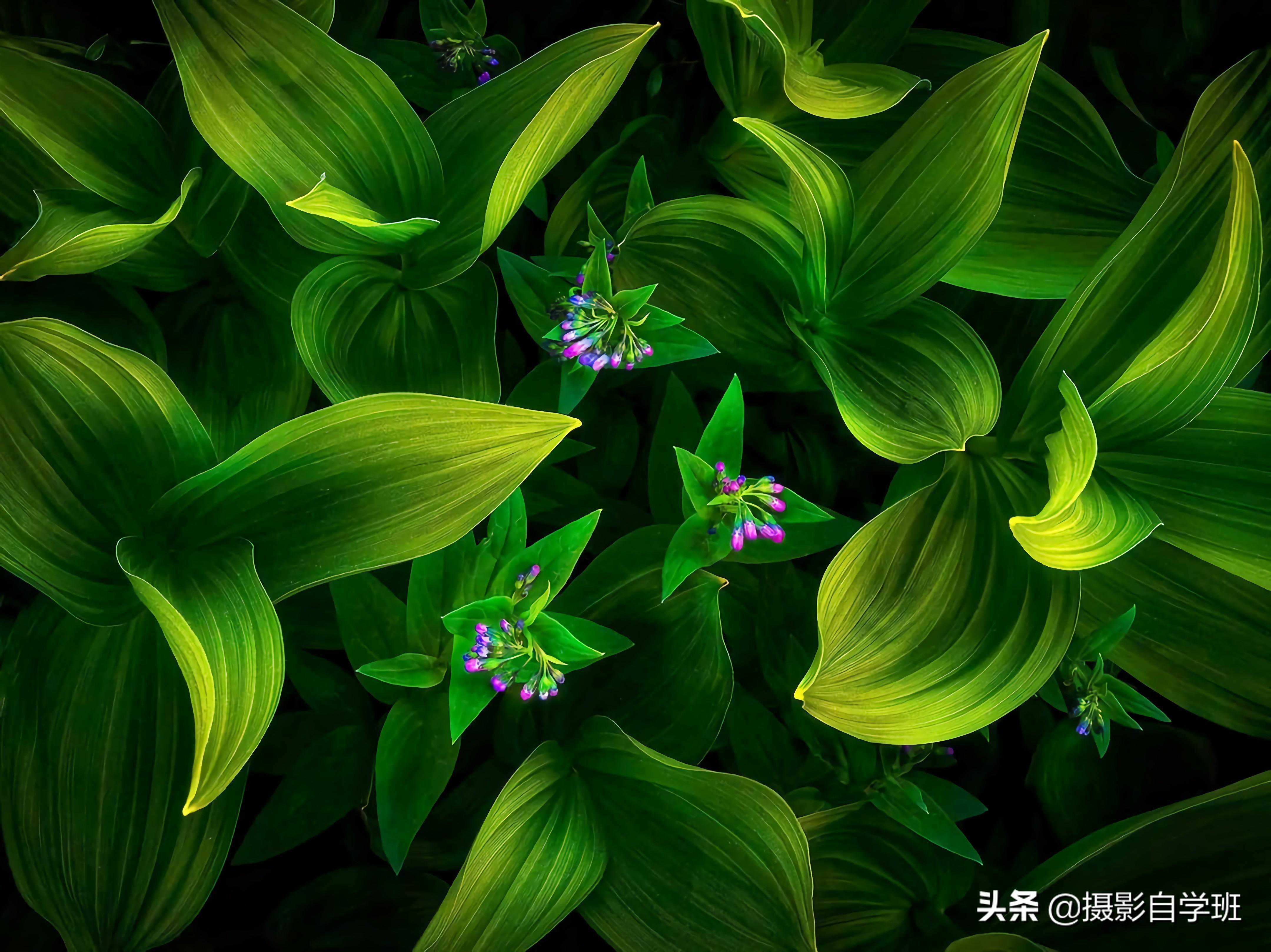 想让风景照片好看,还要等待或者寻找,特殊的点。比如上图,蹲下拍摄的同时,还要等太阳在树的缝隙处,这样使用小光圈,就能拍出星芒的效果了。比如下图,整张画面,绝大部分面积都是绿叶,中间有几朵花,就会显得很特殊。这些特殊的点,就好比绘画中的点睛之笔,可以让你的风景照片,更灵动,更有生机。有对比之后,更有张力。
