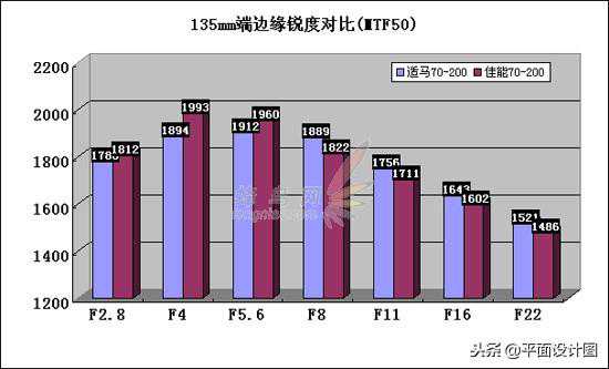 在边缘锐度方面,“小白”的价值得到了体现。与中心锐度的测试结果正好相反,在大光圈条件下不论是70mm、135mm还是200mm端,“小白”的边缘锐度要好于适马“小黑”,而且越到大光圈和长焦端优势越发明显;而到了小光圈的条件下黑白两道所表现相当。另外随着焦距的变长两只镜头的边缘锐度也呈现下降趋势。