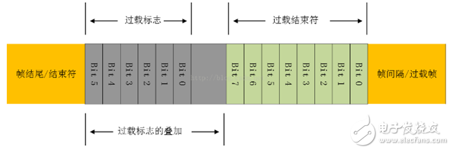 特别的在间歇期间,所有的节点都不允许传送数据帧和远程帧,唯一看做的是标示一个过载条件。