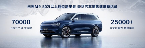 全场景智慧旗舰SUV问界M9上市短短三个月内累计大定突破7万辆,刷新国内50万元级别豪华汽车销售速度纪录。2024年第一季度,问界跻身中国市场豪华品牌销量前五,见证中国汽车豪华品牌新格局。