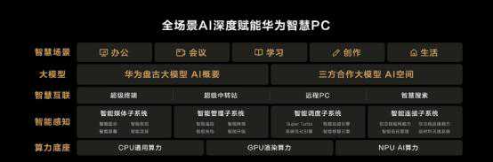 华为MateBookXPro的智慧体验再升级,全场景Al深度赋能华为智慧PC,首次应用华为盘古大模型,新增AI概要功能,并首发搭载华为AI空间。不仅如此,该产品还联合万兴喵影、WPS等第三方合作伙伴,带来了更全面的智慧能力。通过超级终端互联其他设备还能将华为MateBookXPro的智慧能力扩展至手机、平板等设备;全新升级的PC多屏协同支持P3广色域投屏,与华为手机进行P3广色域投屏,画面色彩、细节表现一致,互联体验再上一个台阶。