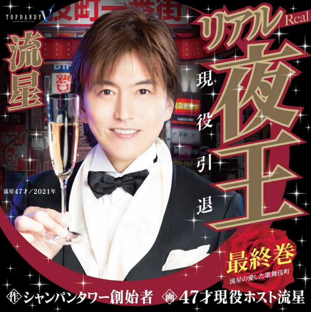 最著名的莫过于,一度成为漫画原型,江湖人称“歌舞伎町夜王”的90年代头号牛郎——【流星】!