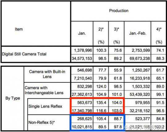 受到固定镜头相机暴跌影响2月份总销量比去年更低。其中2月可换镜头相机整体销量与去年接近,高于2016年。再看前面表格具体销量,数码单反销量有所增长,而无反相机则有下降。