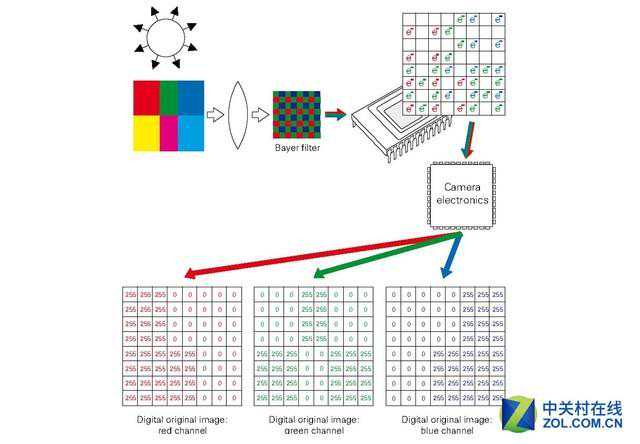 CCD技术解决了光信号到电信号的问题,而拜耳滤镜解决了获取色彩信息的问题