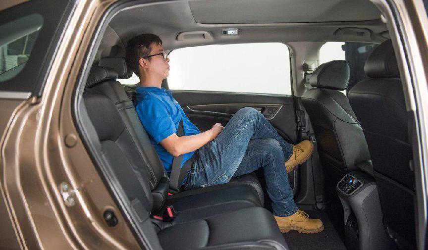 其次是冠道的空间表现真的非常大。身高179cm的体验者坐在后排,腿部空间3拳有余,头部空间则有四指,相比同级车型,优势可谓是相当明显。毫不夸张地说,冠道后排是能够轻松翘起二郎腿的,这也是为什么我们推荐家用消费者买它的重要原因。