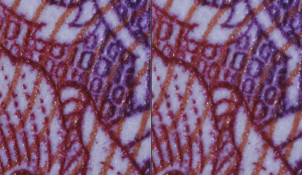 从测试图上看,镜头在1:1.4放大倍率下最大光圈锐度能够接受,当光圈缩小到F4后锐度开始提高。光圈属于最佳的成像画质。当光圈缩小至F16后锐度开始下降。