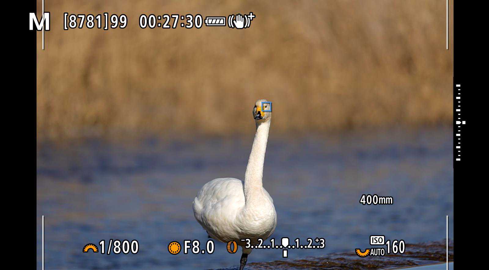 关于这一功能的使用方法我们在这里制作一个抛砖引玉的推荐,相信大家一定能开发出更多的使用场景,由于这个功能是通过检测看向取景器的瞳孔运动对焦,拍摄者看向哪里,自动对焦点就移动到哪里,可实现在多个被摄体间快速有效地切换,所以我们可以配合EOSR3搭载的高精度的被摄体识别新算法,即升级了的眼部识别追焦功能,在一群鸟或者赛车之中,看向想要拍摄的被摄物,就能快速的识别被摄物的眼部或头部,大大提高抓拍的灵活性,使我们能更专注与创作,也能大大提高初次接触拍鸟等生态题材或赛车等运动题材的摄影爱好者的成功率,可谓是如神助。
