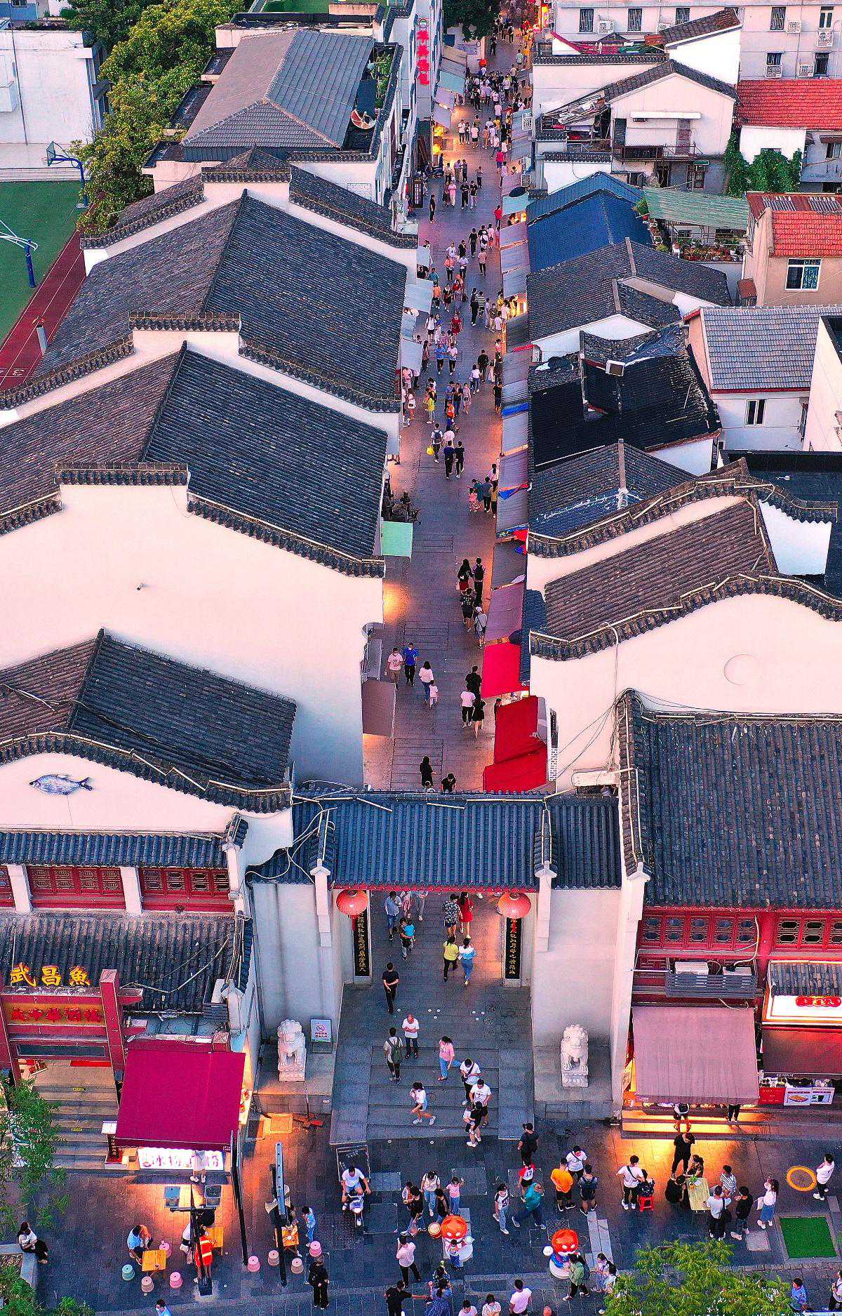 摄影师吴伟创作的《寻味户部巷》,用无人机高处视角,呈现这条著名汉味美食街的古色古香、味好不怕巷子深的“江湖地位”。他说:“户部巷很拥挤,不容易出大景,站在地面拍也拍不出好图。我在外围尝试飞无人机,结果发现画面还不错。”