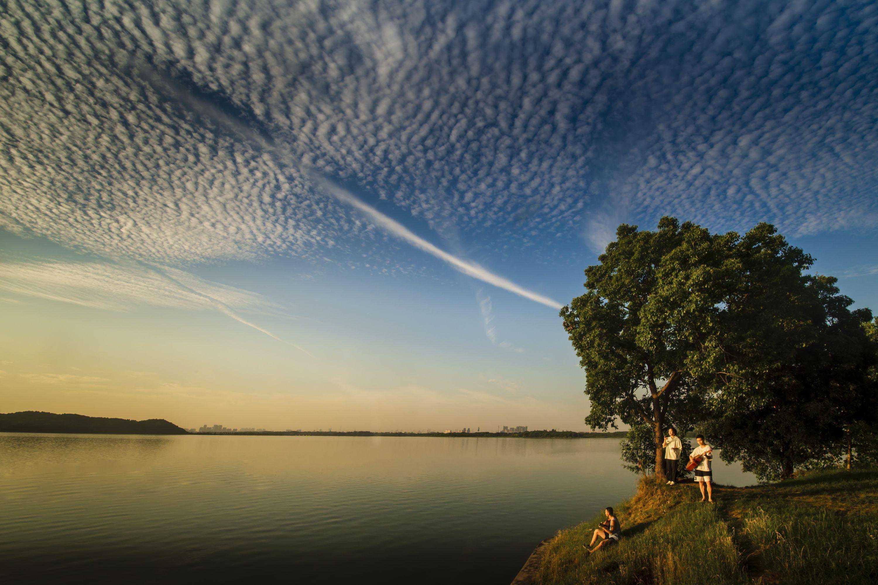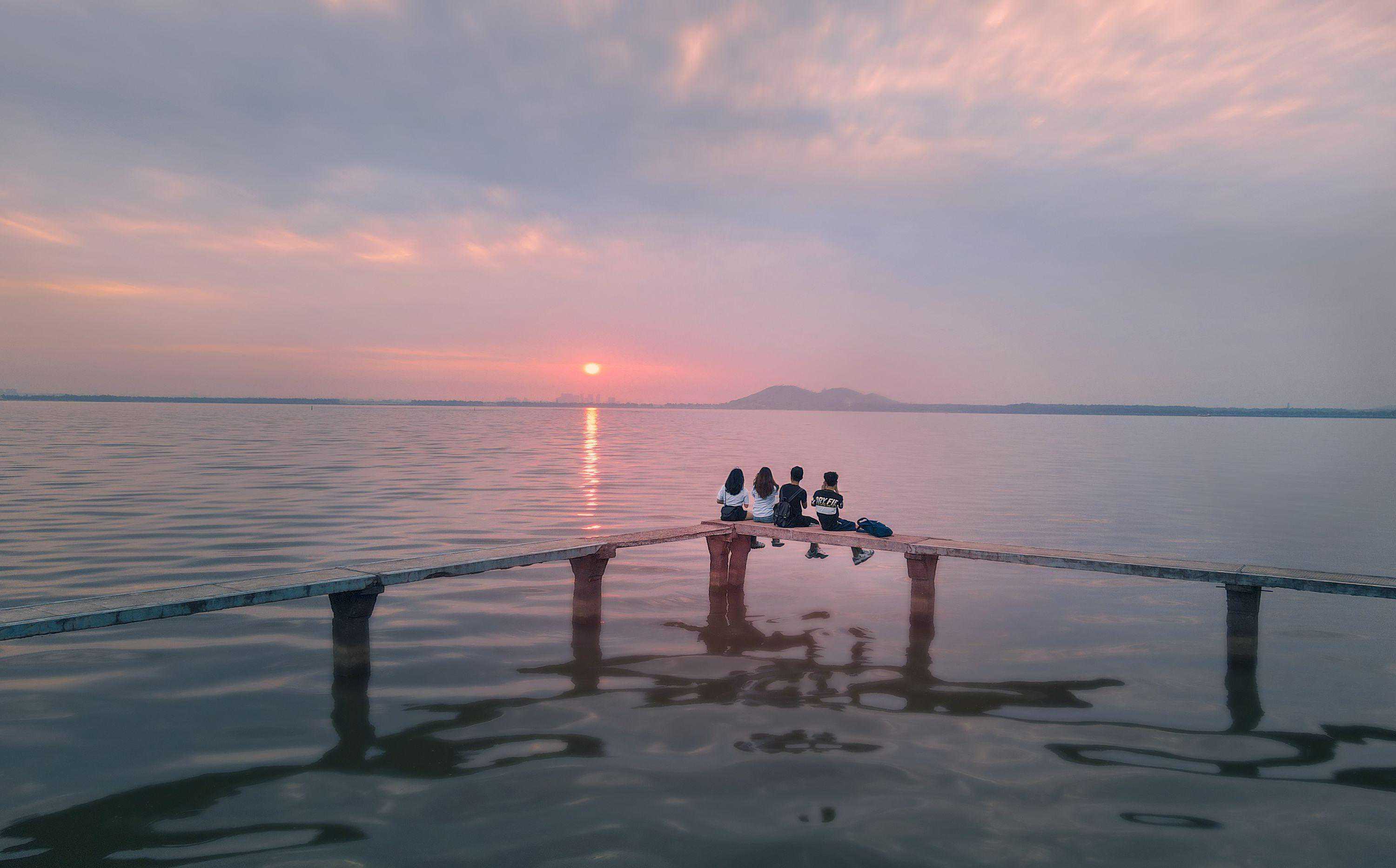 《浪漫日出》,清晨五点半,东湖凌波门有不少来看日出的大学生。城市摄影队方健摄