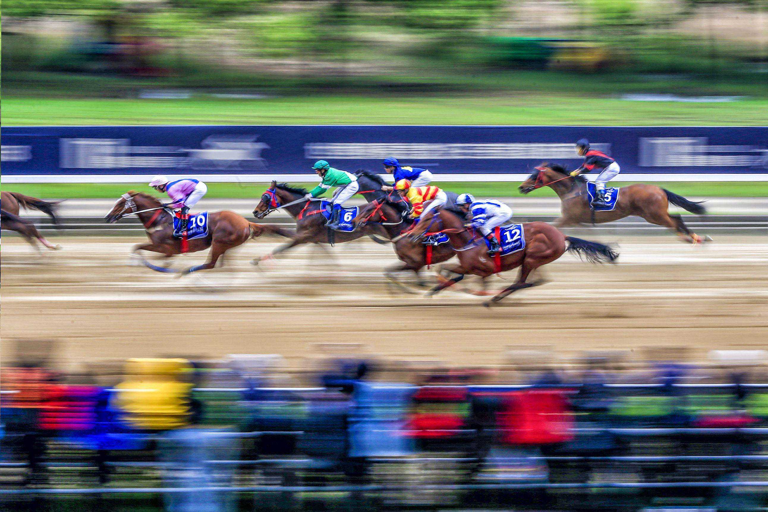 《速度赛马》,2021中国·武汉速度赛马公开赛,骑手们骑着赛马驰骋赛场。城市摄影队张洪安摄