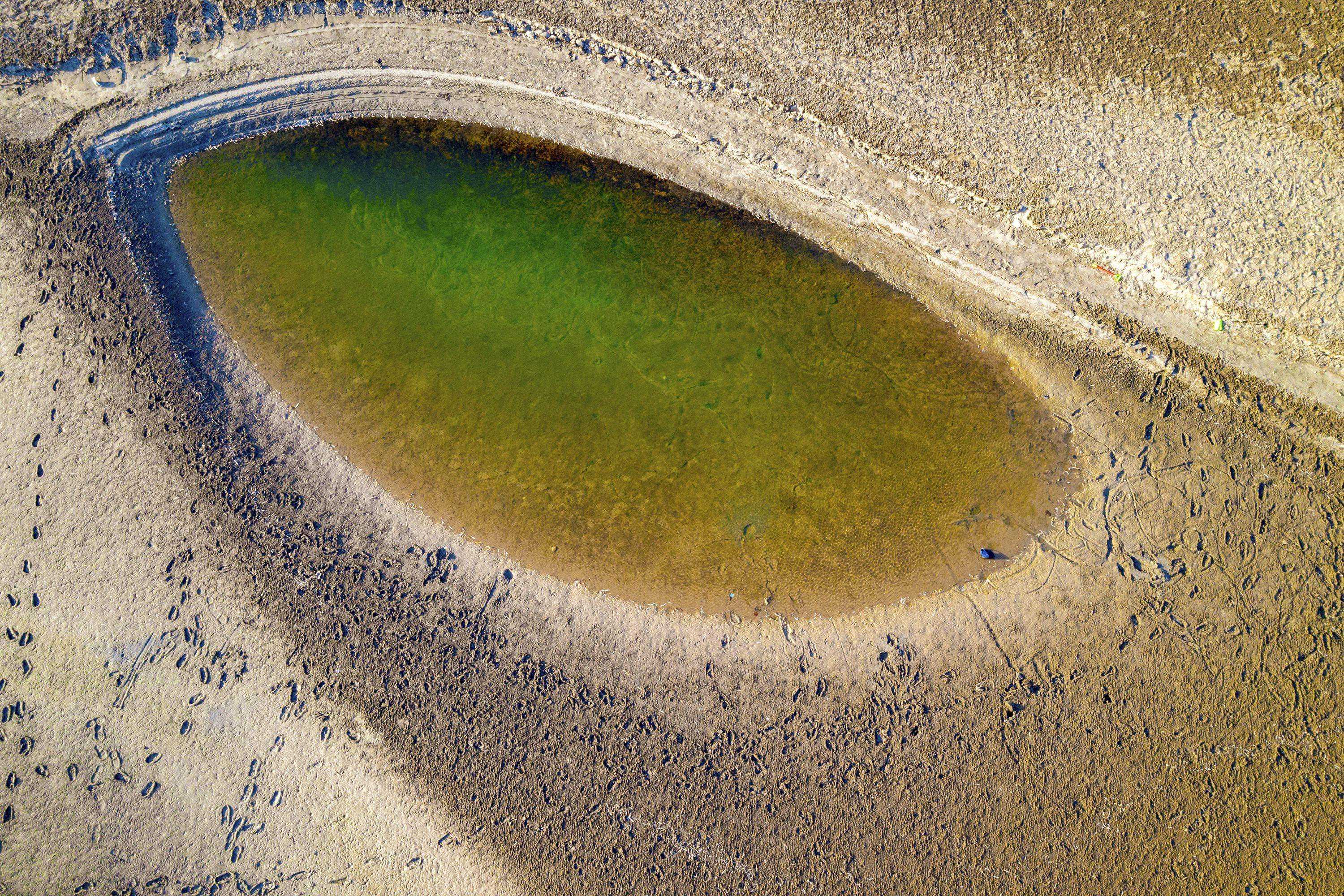 《天兴洲上镶翡翠》,长江水位下降,枯水季的天兴洲露出沙滩,江水仿佛是镶在沙洲上的翡翠。城市摄影队聂国祥摄