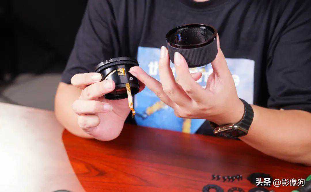 马达所驱动的对焦组镜片拿起来感觉并不重,但它依旧是2组3片的镜片结构,并非采用单片对焦设计,这样能够在一定程度上保证近摄画质。