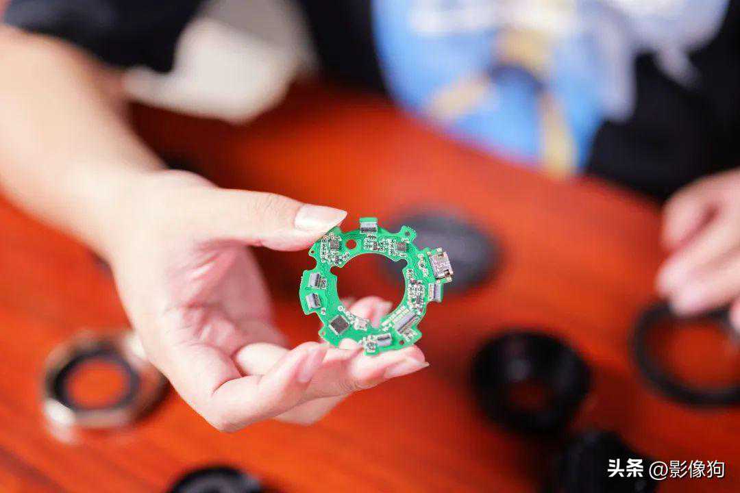 拆开这个带触点的卡口后可以看到完整的电路板,也就是镜头的主板,这块板子就控制了对焦、光圈等内容。
