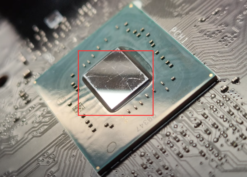 经过仔细排查,发现这些出故障的微星Z790主板有一个共同特点,那就是南桥芯片上有很多裂缝(请参阅图二和图三),这被认为是导致主板出现故障的主要原因。