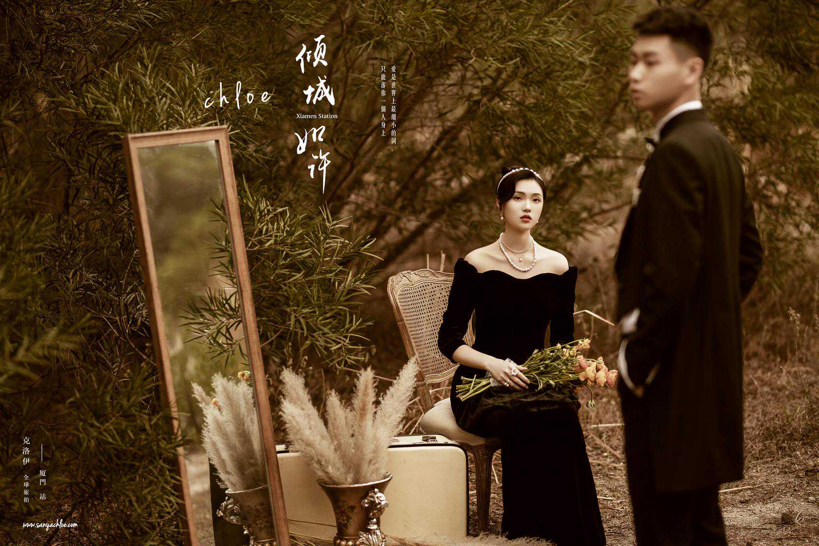 根据婚纱照风格和尺寸来考虑每一张照片的展现方式,一般小的照片是一页两张或者一页一张,大的照片是两页一张,重点在于标题醒目,画面饱满,版面平稳,构图厚实,并且比较强调色调运用的统一。