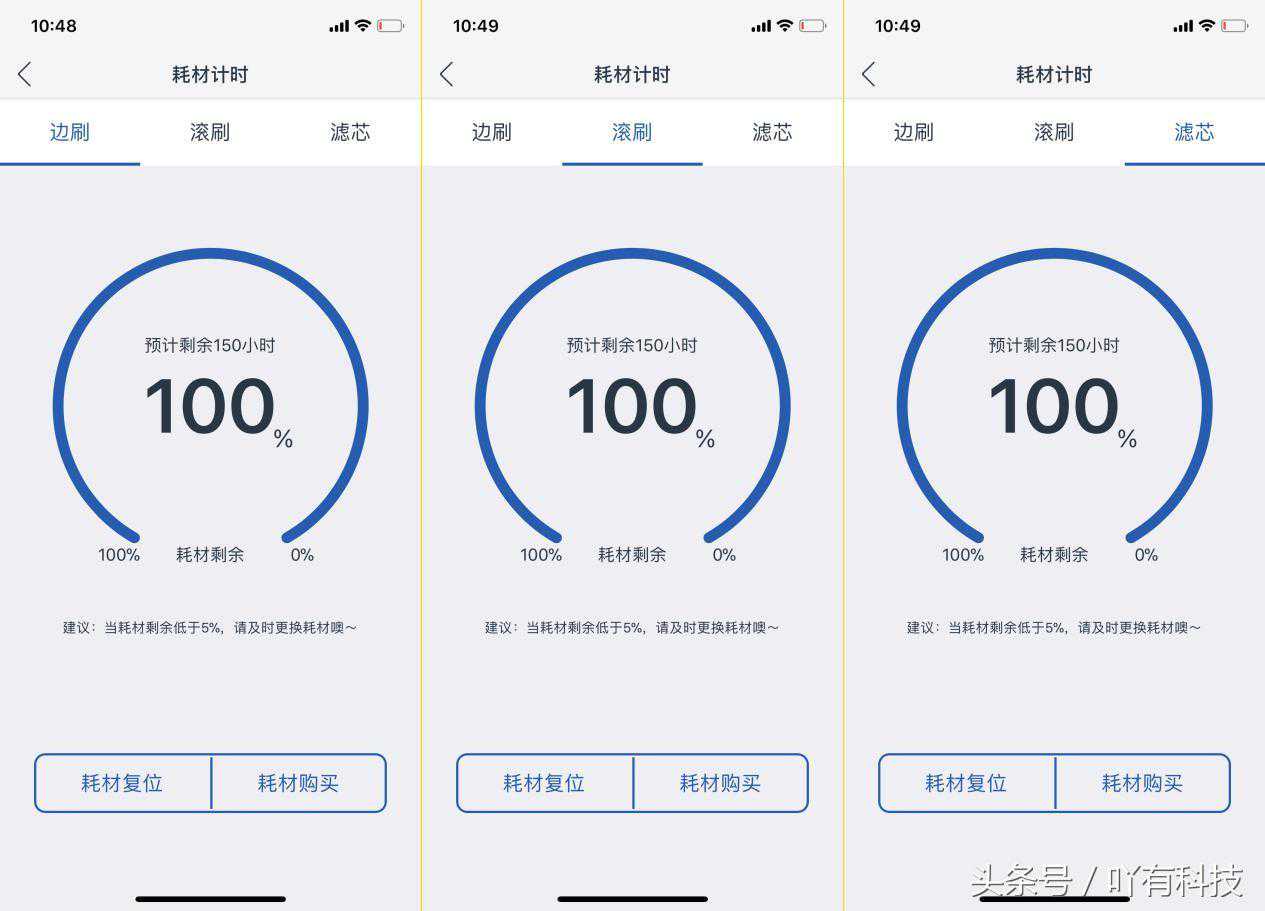 扫地机耗材都有一定寿命,手机APP可以统计工作时间,当接近使用寿命时建议重新更换,更换后耗材复位即可。▼