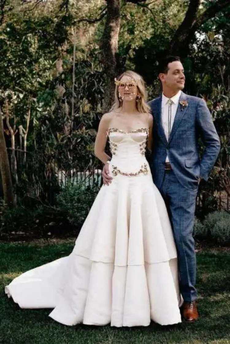 我很心水的一套造型,来自Schiaparelli品牌现任创意总监DanielRoseberry给他妹妹设计的金色骨骸婚纱。