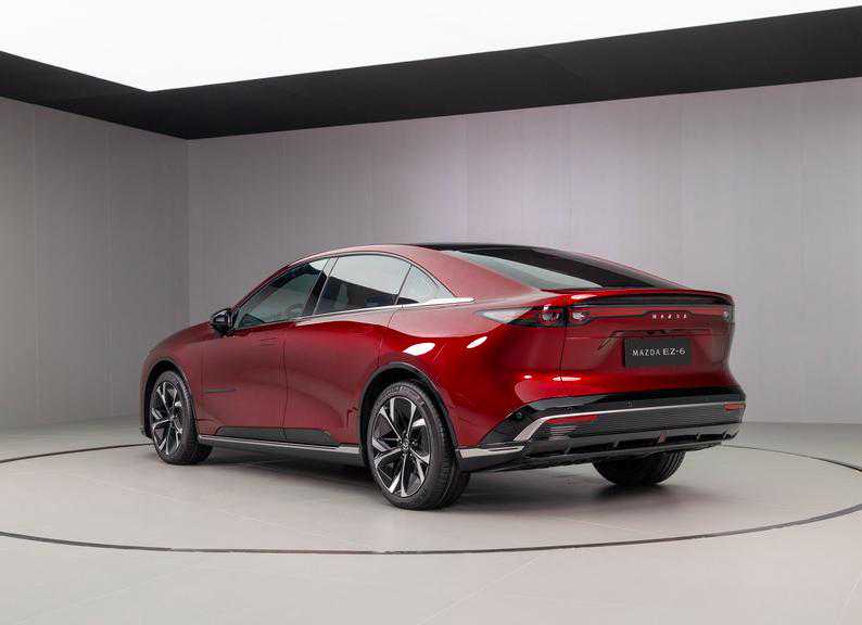 长安马自达EZ-6在2024北京车展上正式首发亮相,新车是长安与马自达联合开发的新能源车型,定位中型车,预计会在下半年正式上市。纯电版采用全新的封闭式格栅设计,格栅面板底部以及两侧都采用LED光源,配合发光的品牌Logo,营造出众的科技感。LED日行灯细长锐利,远近光一体式大灯隐藏于黑色面板内部,高配车型预计将支持自适应远近光灯功能。两侧采用夸张的通风口造型,底部格栅进行镂空处理,起到了散热的作用。