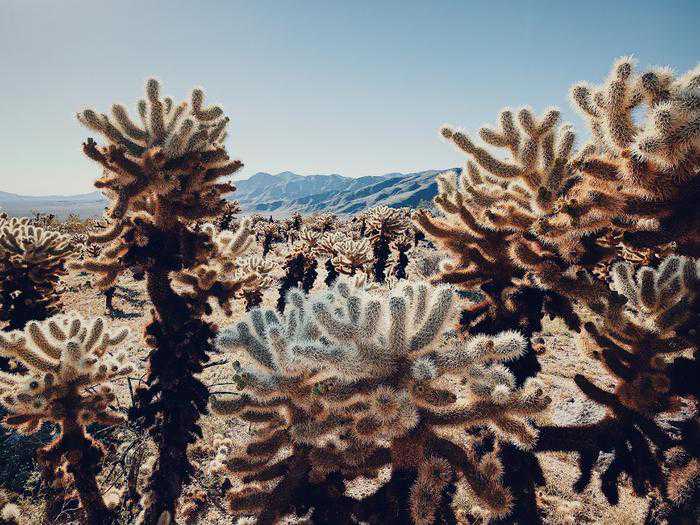 刘丹获奖的照片拍摄于美国的约书亚树国家公园一个名叫ChollaCactusGarden的山谷,这里生长着大片的Teddy-bearcholla(植物名),这些植物无惧酷热与干燥,在烈日下肆意的生长。