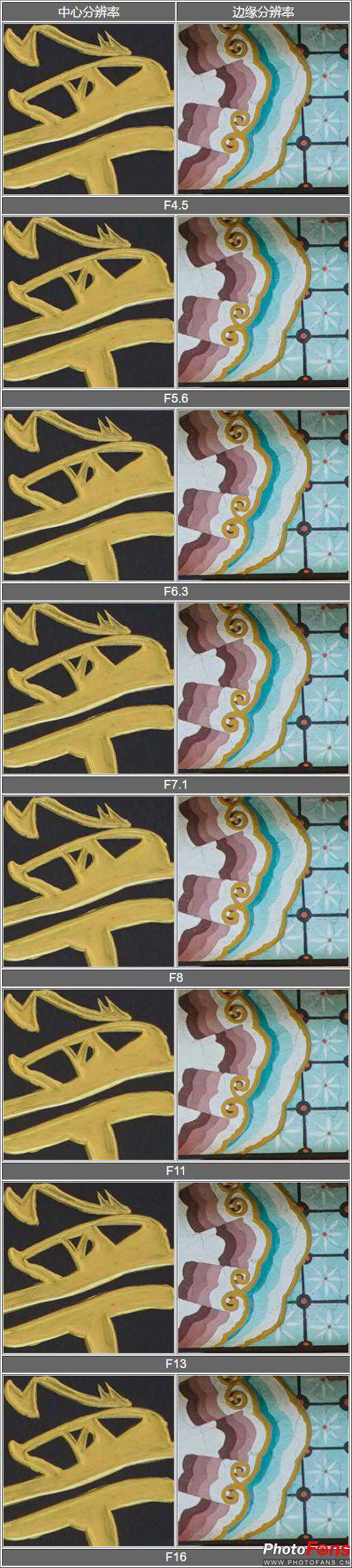 通过对比我们可以看到,这支镜头200mm端中心的各档光圈表现非常平均,收到时画质表现最佳。而边缘的分辨率相对于中心就有所下降,但是总体来说都非常让人满意,最佳光圈同样在。