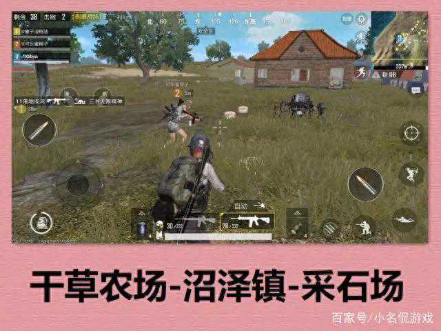 其实很多野区都有属于自己的官方名称,只不过光子为了突出大型点位没有在游戏中标注罢了,干草农场就属于这一种情况,它位于医院西南方向野区,有四五组房子,沿着南北向的马路分布。干草农场的物资并不算丰富,但它却是这条打野路线的开端,从这里往南可以沿途搜集G镇电台(卫星楼),沼泽镇,一直到南面的采石场。