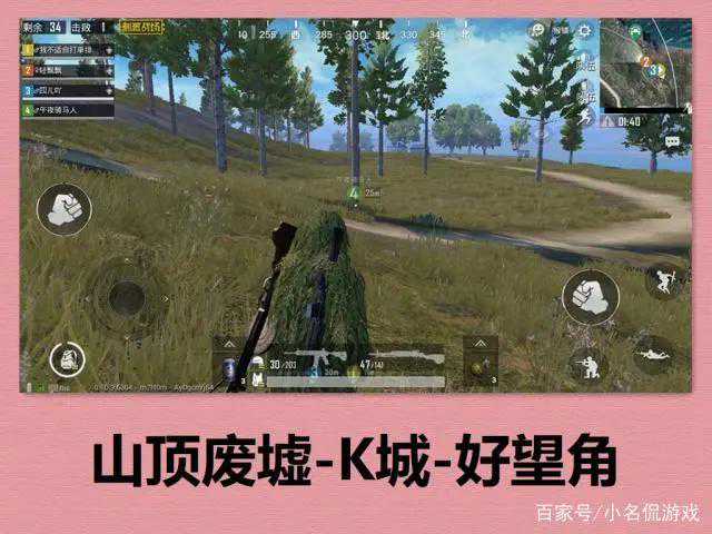 山顶废墟的玩家数量在野区不算少,但是这里能够吸引许多王牌选手的原因在于只要占据了这片野区,就有了很大的战术选择空间,而且这条打野路线主要是围绕山顶废墟展开的。首先落地并解决潜在的1~3名敌人,之后再去东北角的K城,沿途进行补给并寻找载具,拿到载具之后往南搜集直到好望角(K城南部野区),在那里完成发育后准备进圈。