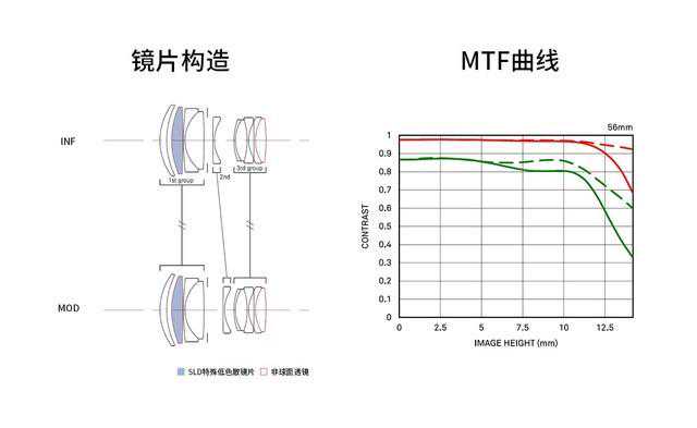 镜头中包含了一枚SLD特殊低色散镜片和一枚非球面镜片,可以有效消除照片中的色差和像差,为用户带来更高质量的画质表现。