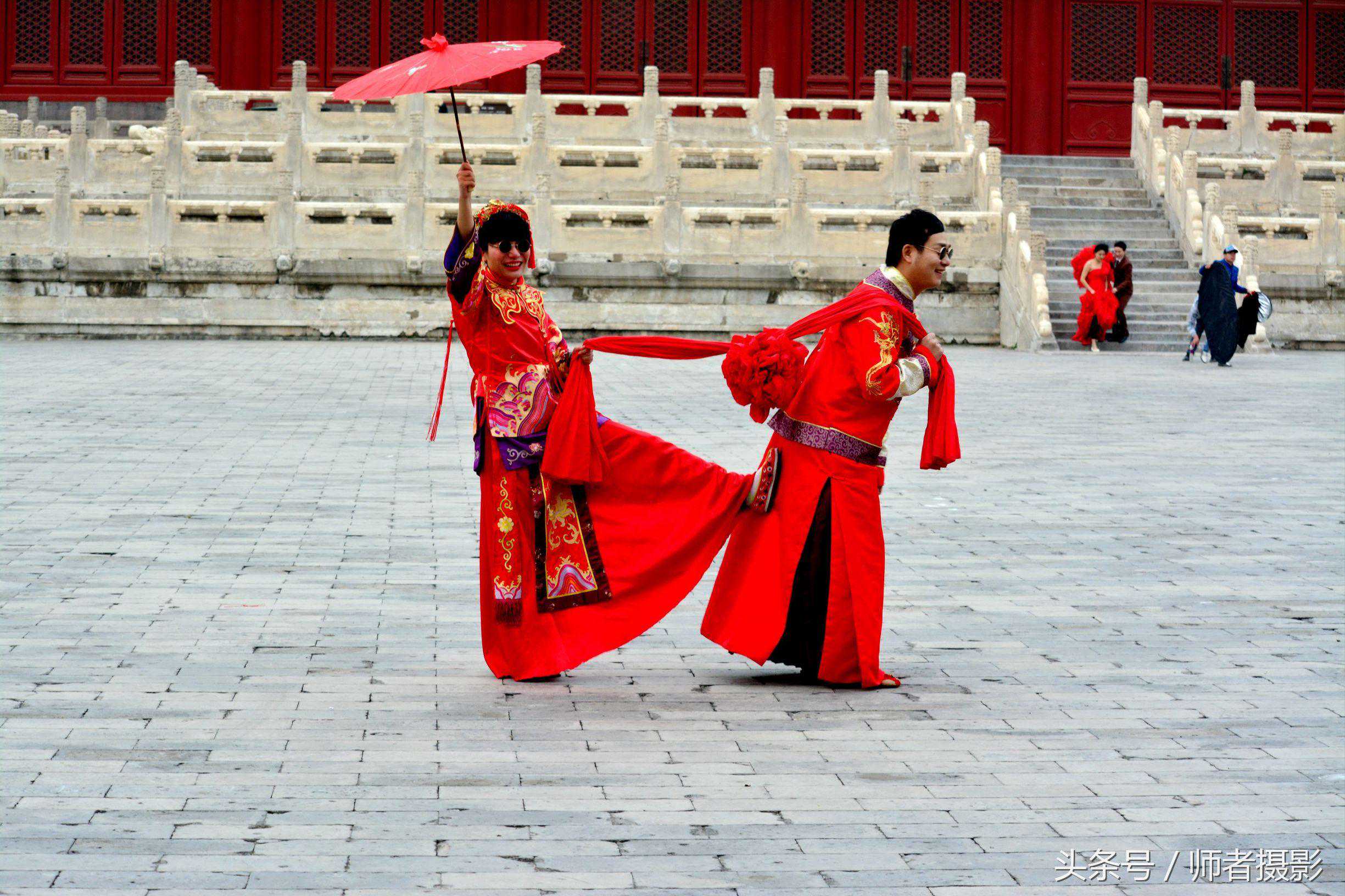不过现在来太庙最多的,是一对一对即将走入婚姻殿堂的伉俪,他们来这里拍婚纱照,沿着汉白玉台阶拾级而上,大红的廊柱,朱红的大门,多有品位。如果你不能在故宫大婚,那就到太庙拍婚纱吧,绝对高大上。